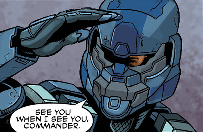 Mais tarde, DeMarco e Madsen foram designados para escoltar a Dra. Catherine Halsey enquanto ela foi levada a bordo da Infinity para inspecionar um artefato Forerunner que Crimson havia trazido recentemente de “The Cauldron“. No caminho para a sala das máquinas, DeMarco questionou por que eles precisavam proteger uma “senhora”. Madsen informou-o sobre o papel de Halsey no programa SPARTAN-II (chamando-a de “cientista maluca”) e o sequestro de crianças para o treinamento militar. Depois que o artefato reagiu quando Halsey interagiu com os controles da sala de máquinas, DeMarco, Palmer e Madsen brandiram suas armas contra Halsey, mas logo as abaixaram, pois não era uma ameaça… ainda.
