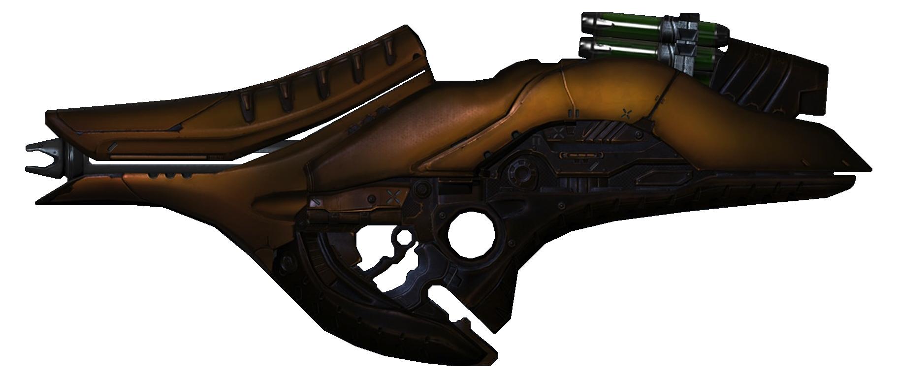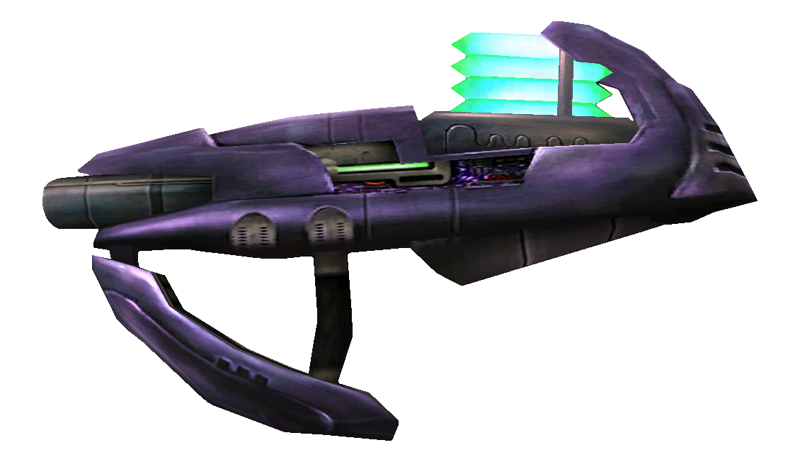Possui um pente de 5 projéteis que pesam aproximadamente 3 kg. Graças ao seu poder de fogo, essa arma possui variantes que são montadas em veículos como o banshee e o wraith anti aéreo. Ainda existem versões que possuem sensor de calor, que perseguem veículos inimigos. Os Caçadores ( Hunters ) utilizam uma dessas versões acoplada ao braço.