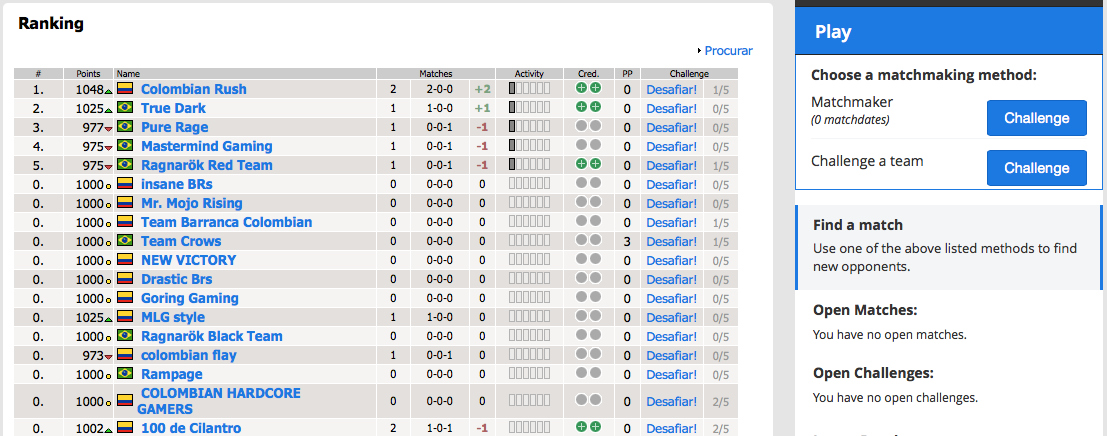 Challenge a Team: Com este método, você pode desafiar uma equipe diretamente. Abra os Rankings e escolha o seu adversário. Você deverá escolher a data e o horário do confronto. A equipe rival deverá também deverá aceitar o seu Challenge.