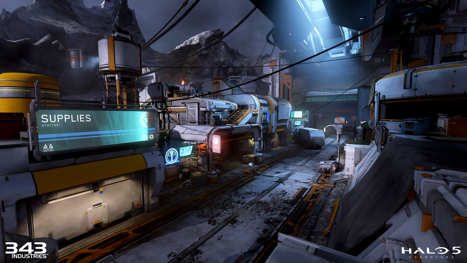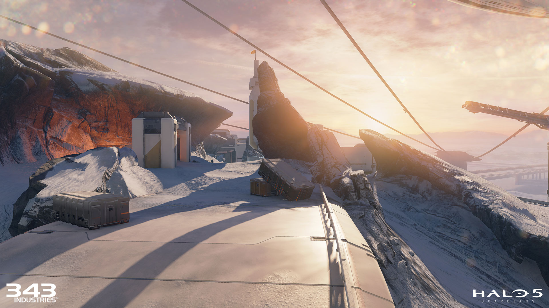 “Usamos uma combinação de formas mais retas e rígidas que a arquitetura da UNSC justapostos com fluxos orgânicos e curvas da paisagem para fornecer fortes contrastes visuais. A enorme estrutura acima da elevação no monte de um lado e a grande vista da paisagem do inverno com pipelines culminaram com ele, os cabos inclinados que ligam os dois principais temas de fundo preveem algumas excelentes vistas ao estilo de cartão de visitas. Nós queríamos especificamente uma forte composição para os jogadores que saem da Home Base e também dar ao Forte muita atenção com um perfil limpo contra o fundo e uma plataforma de serviços grande ecoando da mesma forma.”