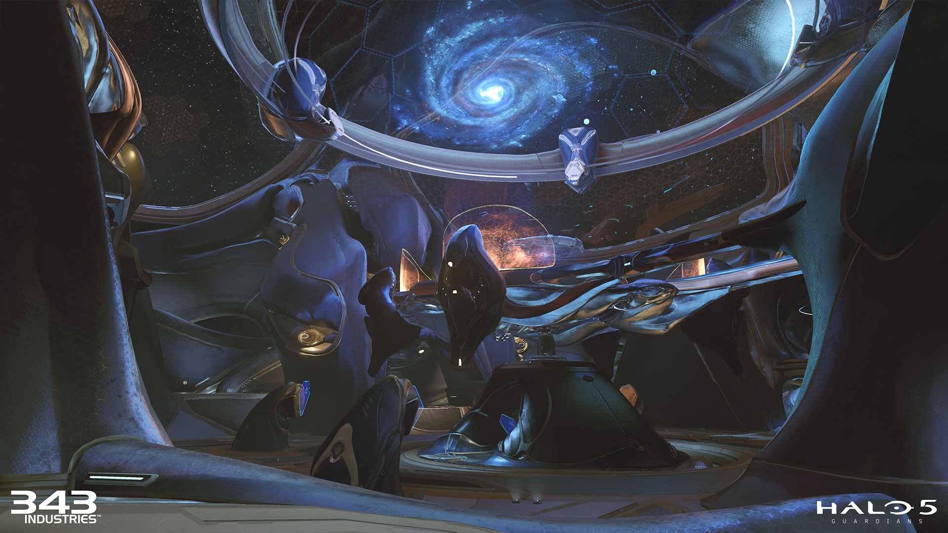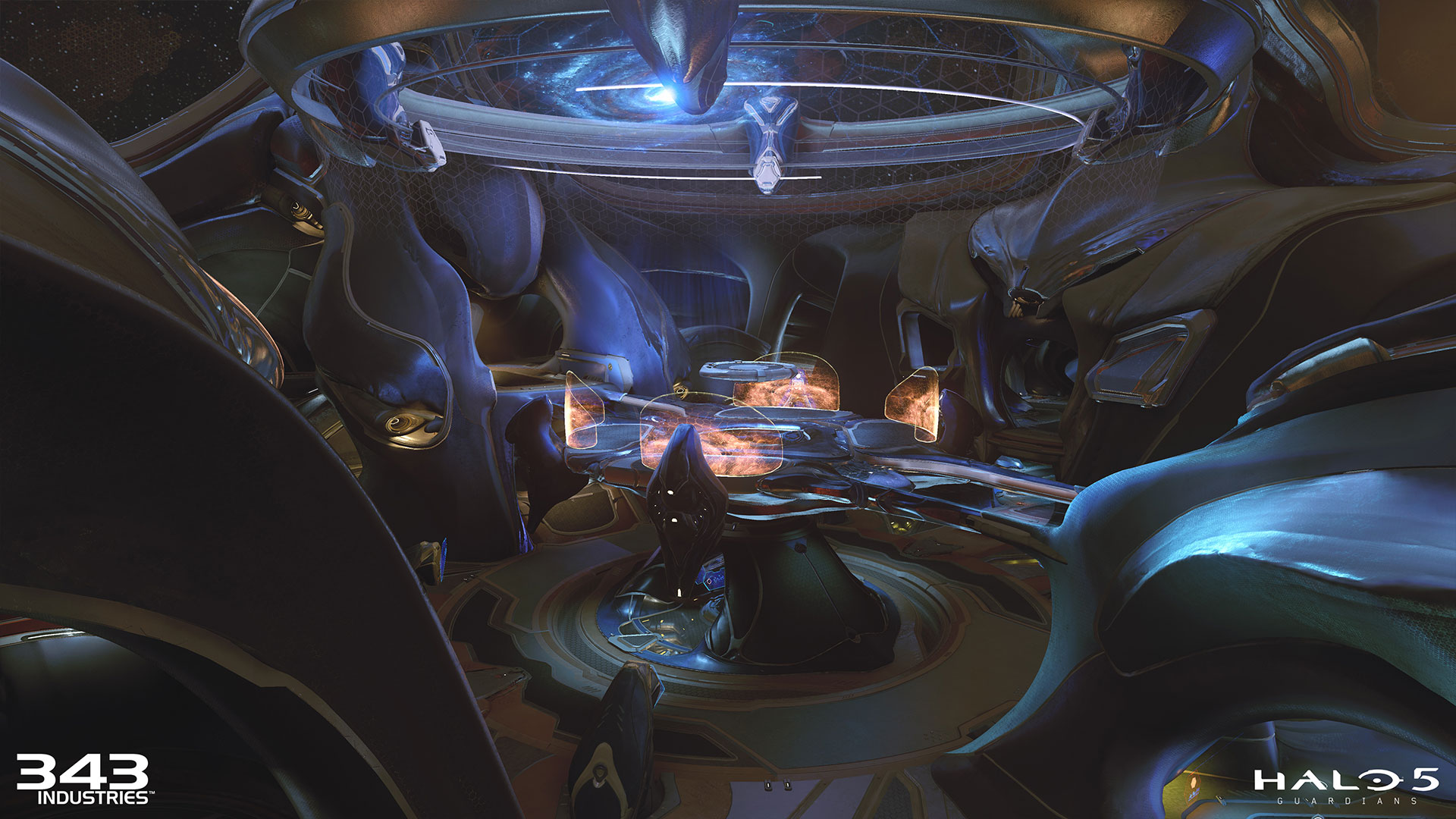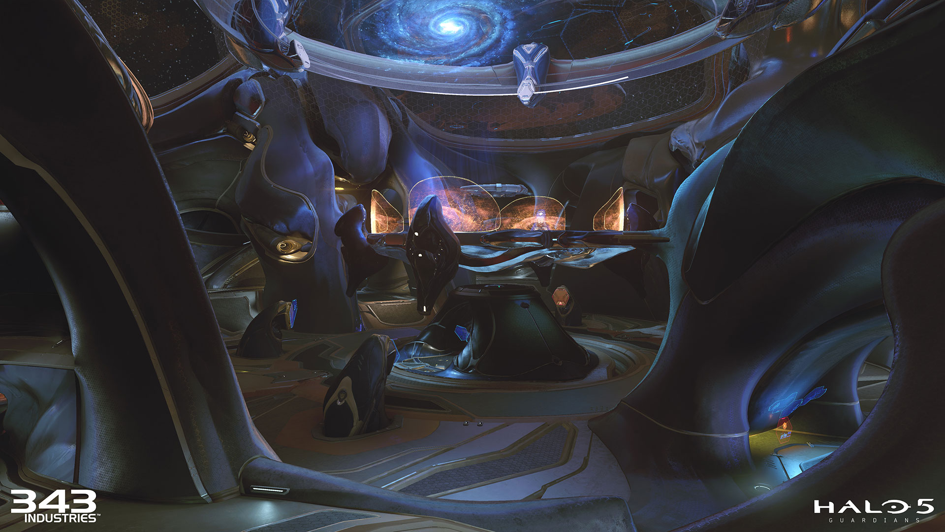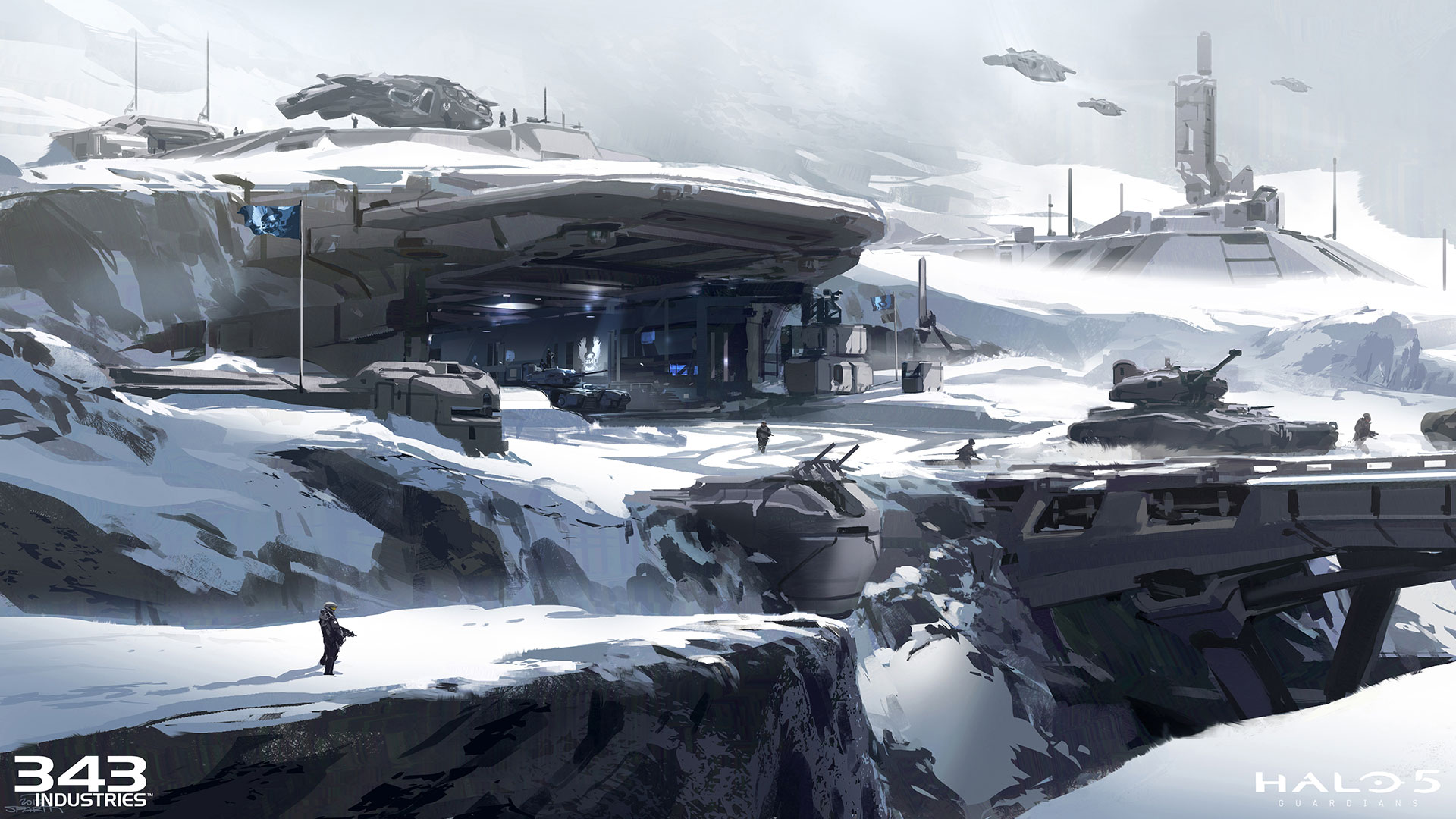 “Uma equipe de artistas e designers trabalharam em estreita colaboração com a narrativa do jogo, com artes dos personagens, arte de ambientes e com os diretores durante aproximadamente 3 anos para criar o conceito de arte final para o Halo 5: Guardians. Durante o desenvolvimento, a equipe de conceito teve a oportunidade de tocar quase todos os ativos e aspectos do jogo. A partir de esboços rápidos, aquisições de pintura e ativos 3D e arte de linha que descrevem detalhes sutis de ilustrações coloridas, mostrando momentos chave do jogo, o conceito de arte é a ponta de lança para todas as equipes de arte do estúdio.” Veja alguma delas: