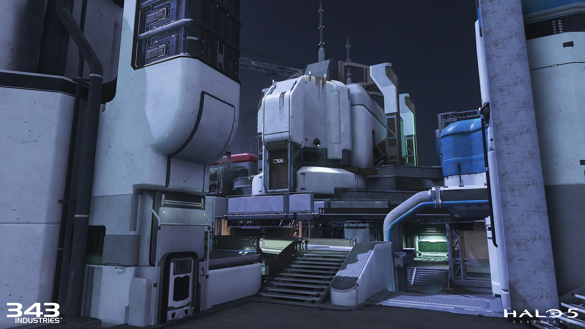 “Ao estabelecer a aparência da estação da ONI, nós precisávamos de algo que iria diferencia-la da paleta padrão da UNSC e que continuasse com uma aparência humana. Queríamos a “área” com um visual misterioso, mas funcional. Inspirado por exteriores de aeronaves, que inicialmente começaram por modelagem das carenagens de metal e bulbosas que ocultam a tecnologia subjacente da nave. Após a aprovação do Diretor de Arte, o conceito da equipe veio e nos forneceu alguns grandes projetos que realmente ajudaram a definir o estilo da ONI. Também, já se sabia que estação estaria em um estado desligado. nossa equipe prestou atenção à forma como a luz iria jogar fora as formas na construção da geometria final do nível.”
