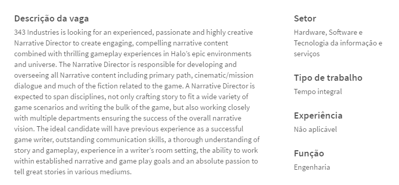 De acordo com uma vaga publicada no LinkedIn, “A 343i está procurando por um Diretor de Narrativa experiente, apaixonado e altamente criativo para criar um conteúdo atraente combinado com as emocionantes experiências dos cenário épico e universo de Halo.”