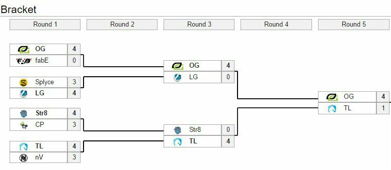 Team Liquid classificou-se em primeiro, seguida pela Luminosity em segundo lugar e a London Conspiracy em terceiro.