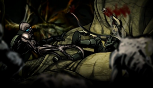 Menos de uma hora depois, o Pelican de Burgundy foi abordado por duas figuras mal iluminadas que reconheceu como Cranker e Maller. Ignorando a infecção e assumindo que foram apenas feridos, Burgundy baixou a rampa traseira do Pelican, apenas para ser atacada pelas duas formas Flood. Entendendo a verdade muito tarde, ela abriu fogo com sua pistola, mas não conseguiu evitar os atacantes. O Flood incapacitou Burgundy e passou a carregá-la duramente para a sala de máquinas da Mona Lisa para ser absorvida no proto-Gravemind que estavam construindo.