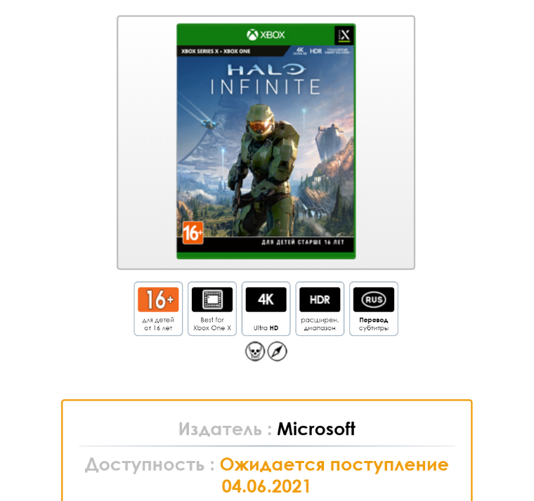A loja possui uma descrição extremamente semelhante com qualquer outra página de Halo Infinite. Entretanto, ela informa que o jogo estará disponível no dia 4 de Junho de 2021. Além disso, a loja em questão já está disponibilizando a pré-venda do jogo.